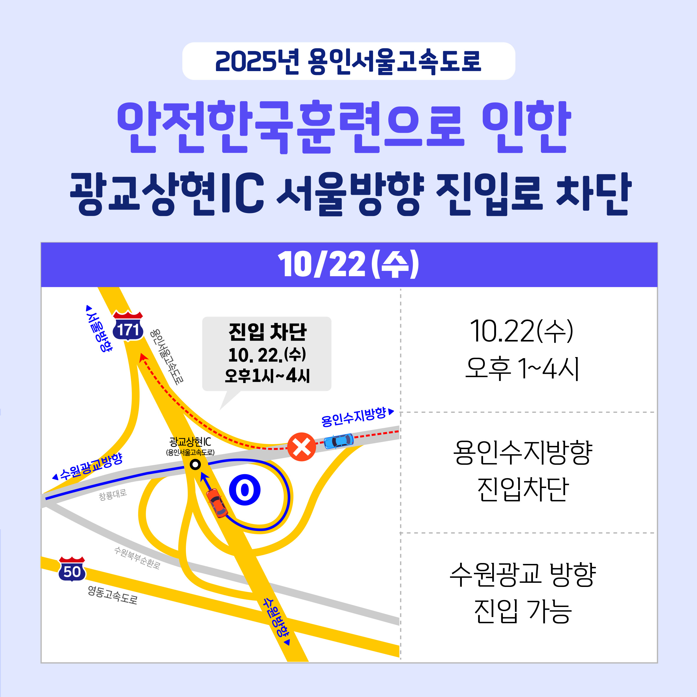 2025년 용인서울고속도로 안전한국훈련(10/22) 안내