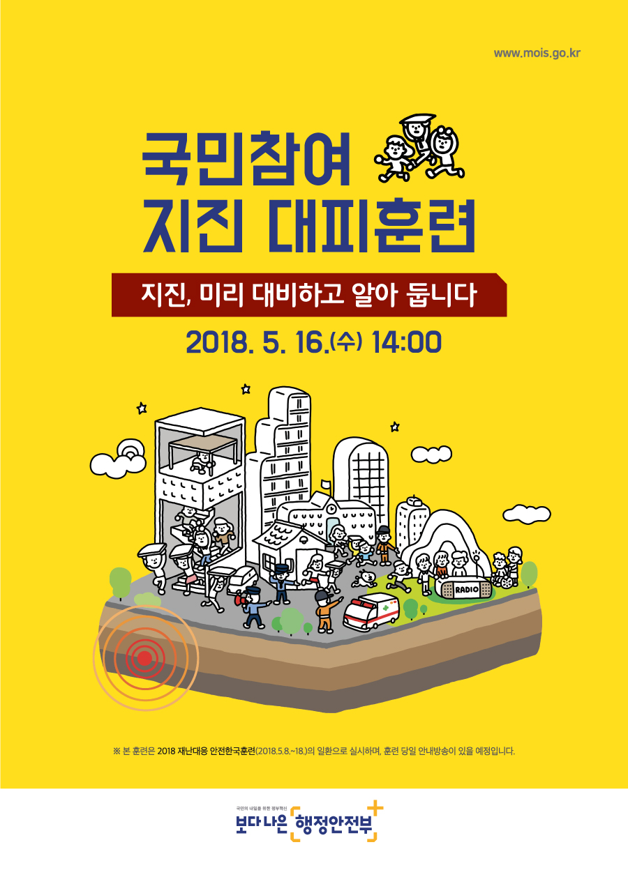 지진 재난을 대비하여 훈련이 시작합니다.